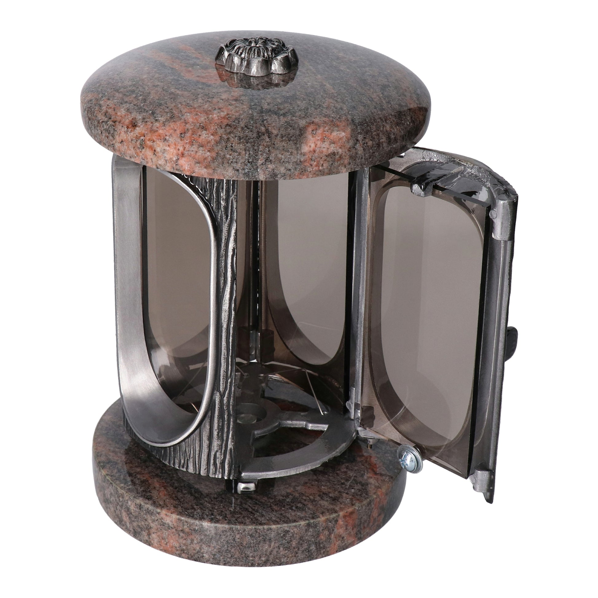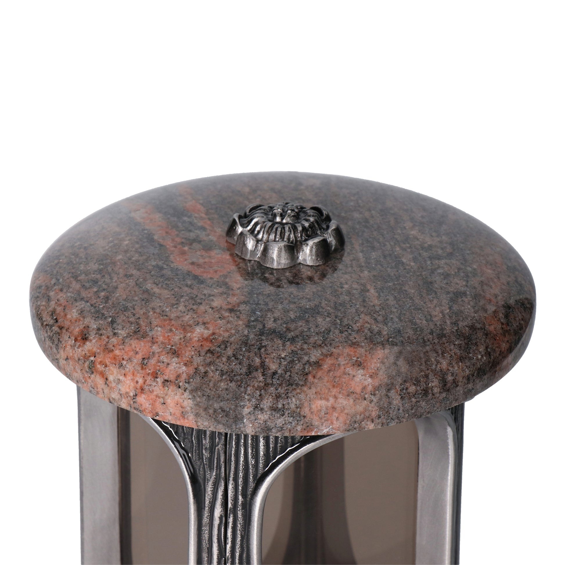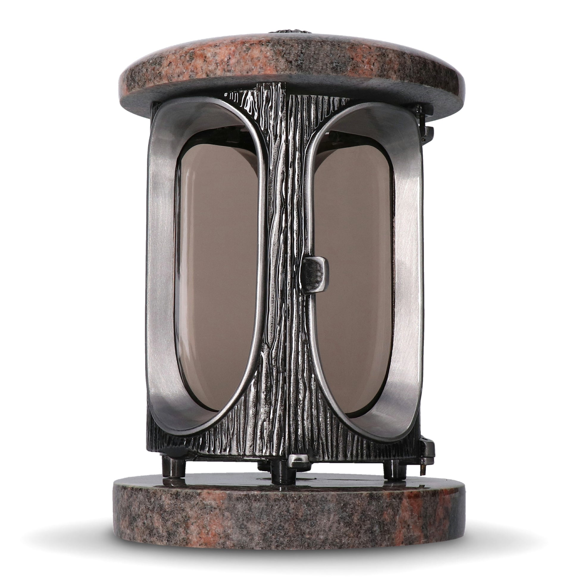 Die Grablaterne Elégant zeichnet sich durch ihre stilvolle und klassische Form aus, die einen würdevollen und zeitlosen Grabschmuck schafft.  Sie ist aus einer Kombination von Granit und Aluminium gefertigt. Der Lampendeckel sowie der Sockel bestehen aus Granit, während der Lampenkörper und das Kreuz auf dem Deckel aus Aluminium hergestelltsind. Eine Tür im Lampenkörper ermöglicht ein bequemes Öffnen der Laterne. Dank aufwendiger Polierarbeiten erhält die Oberfläche einen glatten und glänzenden Look.