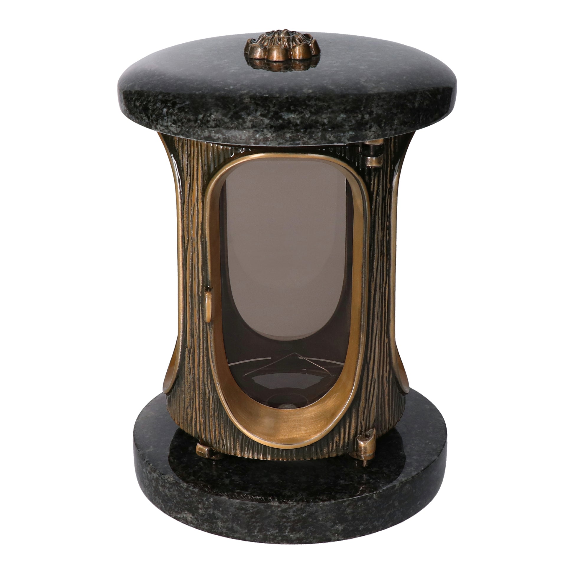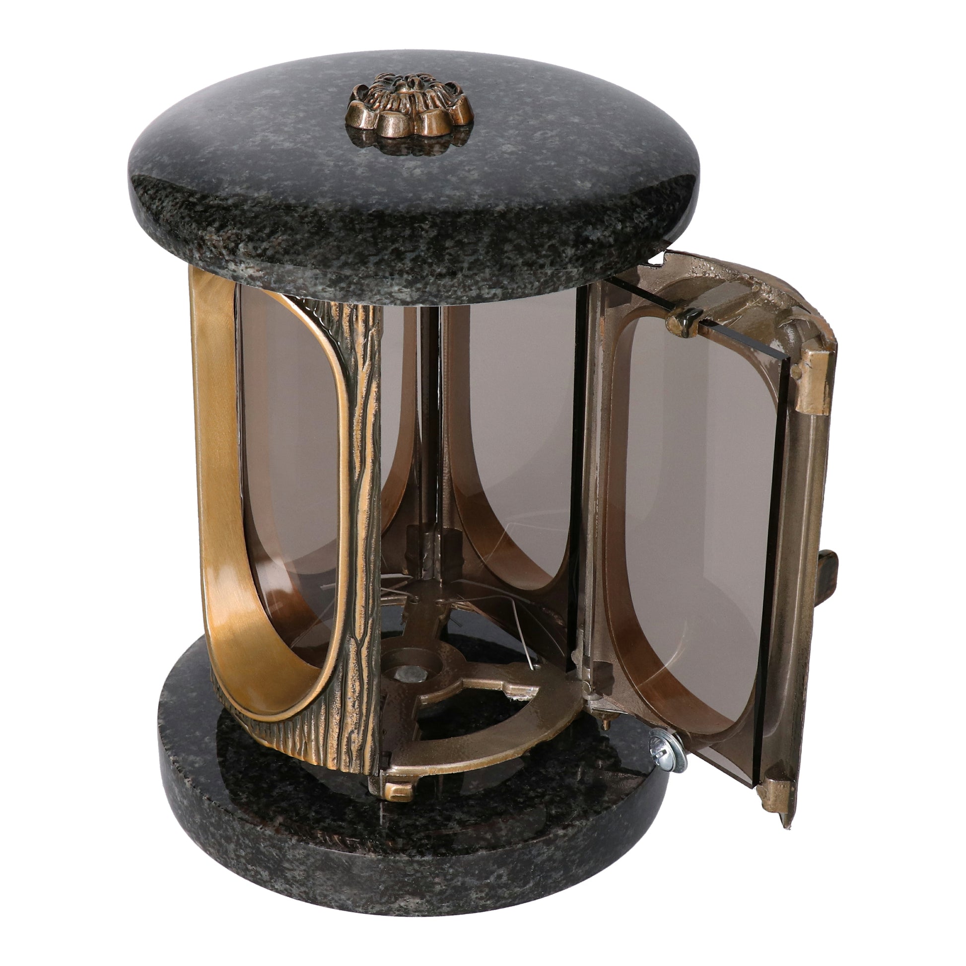 - Grablaterne Maße: Höhe 23 cm, Durchmesser ca.15 cm. Kombination aus natürlichem hochglanzpoliert Granit Impala (Dunkel) und messing farbenem Aluminiumguss in Antikoptik.Hochwertiger Handarbeitet.