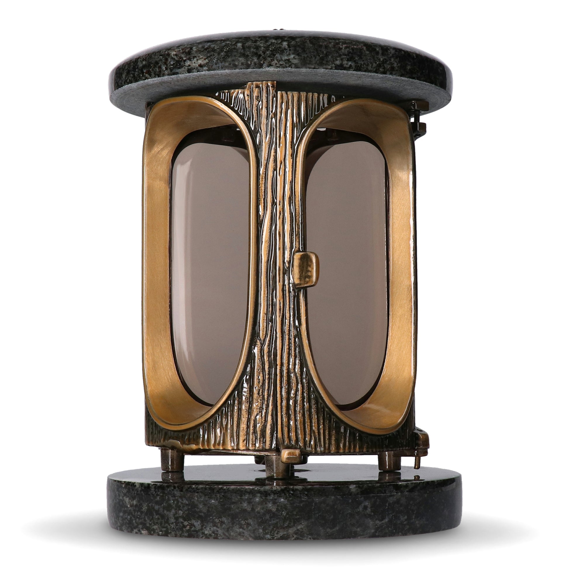 Die Grablaterne Elégant zeichnet sich durch ihre stilvolle und klassische Form aus, die einen würdevollen und zeitlosen Grabschmuck schafft. Sie ist aus einer Kombination von Granit und Aluminium gefertigt. Der Lampendeckel sowie der Sockel bestehen aus Granit, während der Lampenkörper und das Kreuz auf dem Deckel aus Aluminium hergestelltsind. Eine Tür im Lampenkörper ermöglicht ein bequemes Öffnen der Laterne. Dank aufwendiger Polierarbeiten erhält die Oberfläche einen glatten und glänzenden Look.