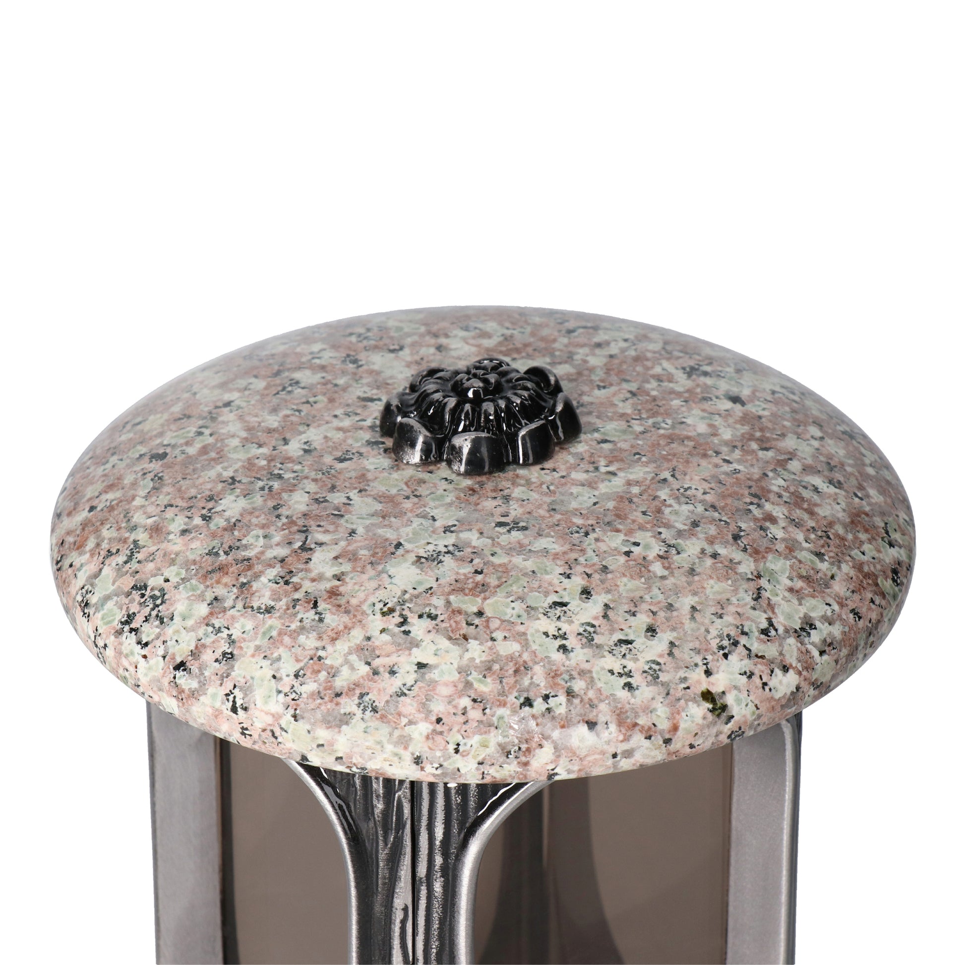 Grablaterne Granit königliche Bronze Höhe 23 cm/Ø 15 cm Silber mit Rosette