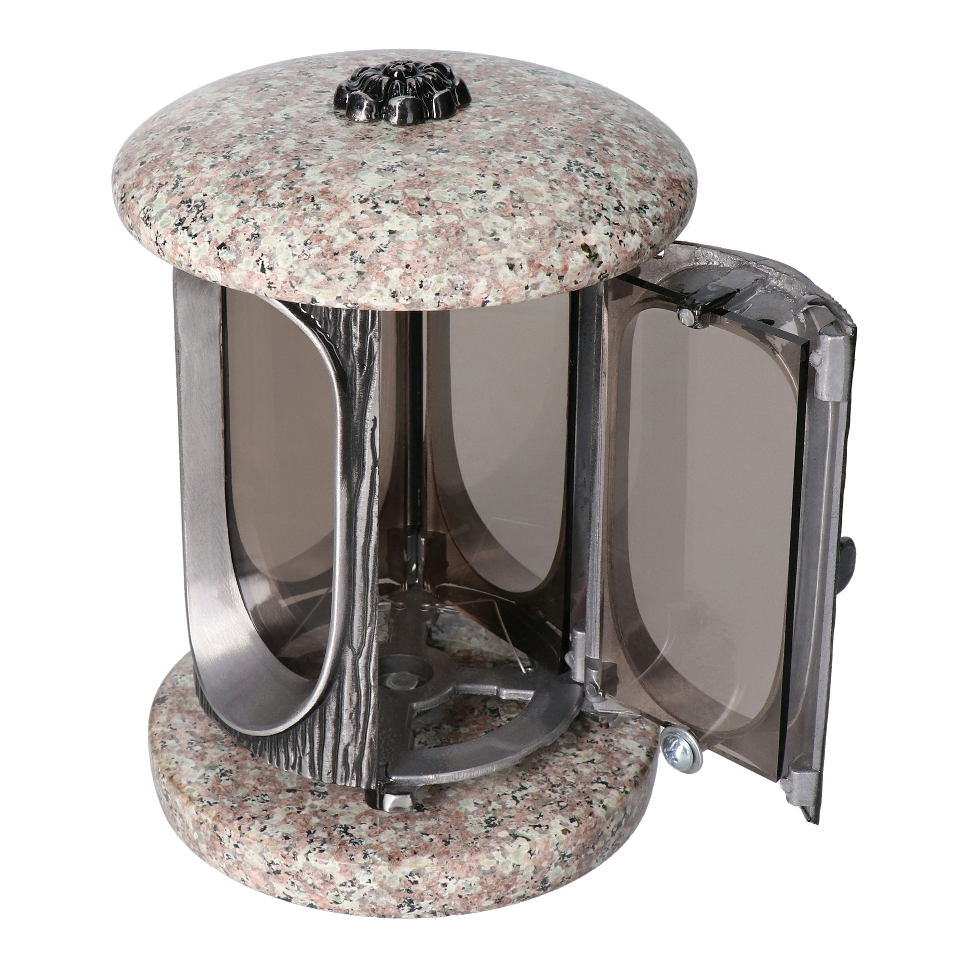 Die Grablaterne Elégant zeichnet sich durch ihre stilvolle und klassische Form aus, die einen würdevollen und zeitlosen Grabschmuck schafft. Sie ist aus einer Kombination von Granit und Aluminium gefertigt. Der Lampendeckel sowie der Sockel bestehen aus Granit, während der Lampenkörper und das Kreuz auf dem Deckel aus Aluminium hergestelltsind. Eine Tür im Lampenkörper ermöglicht ein bequemes Öffnen der Laterne. Dank aufwendiger Polierarbeiten erhält die Oberfläche einen glatten und glänzenden Look.