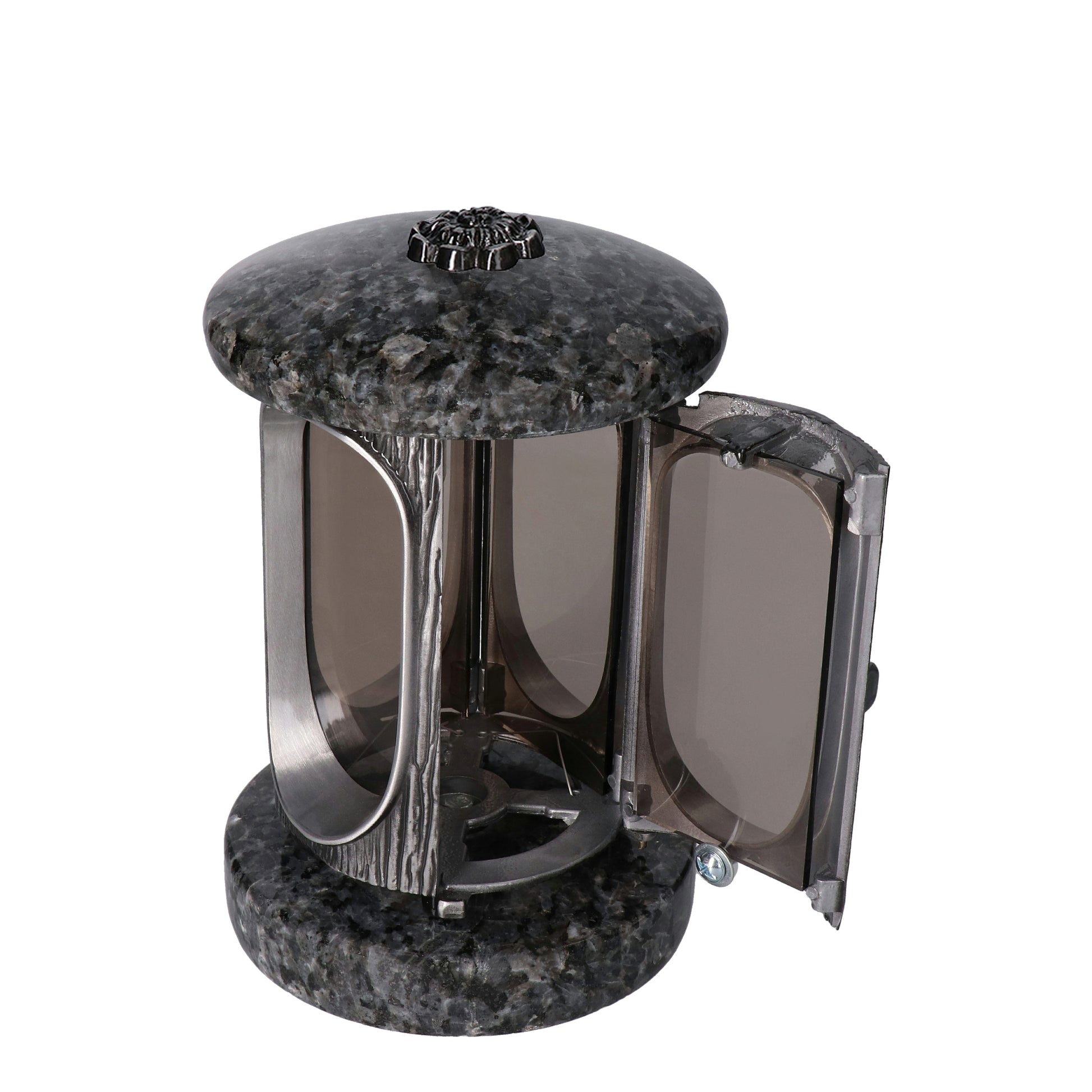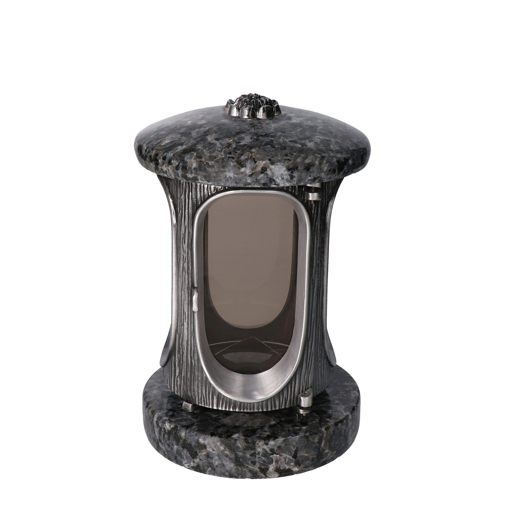 Grablaterne Granit Lablador Höhe 23 cm/Ø 15 cm Silber mit Rosette