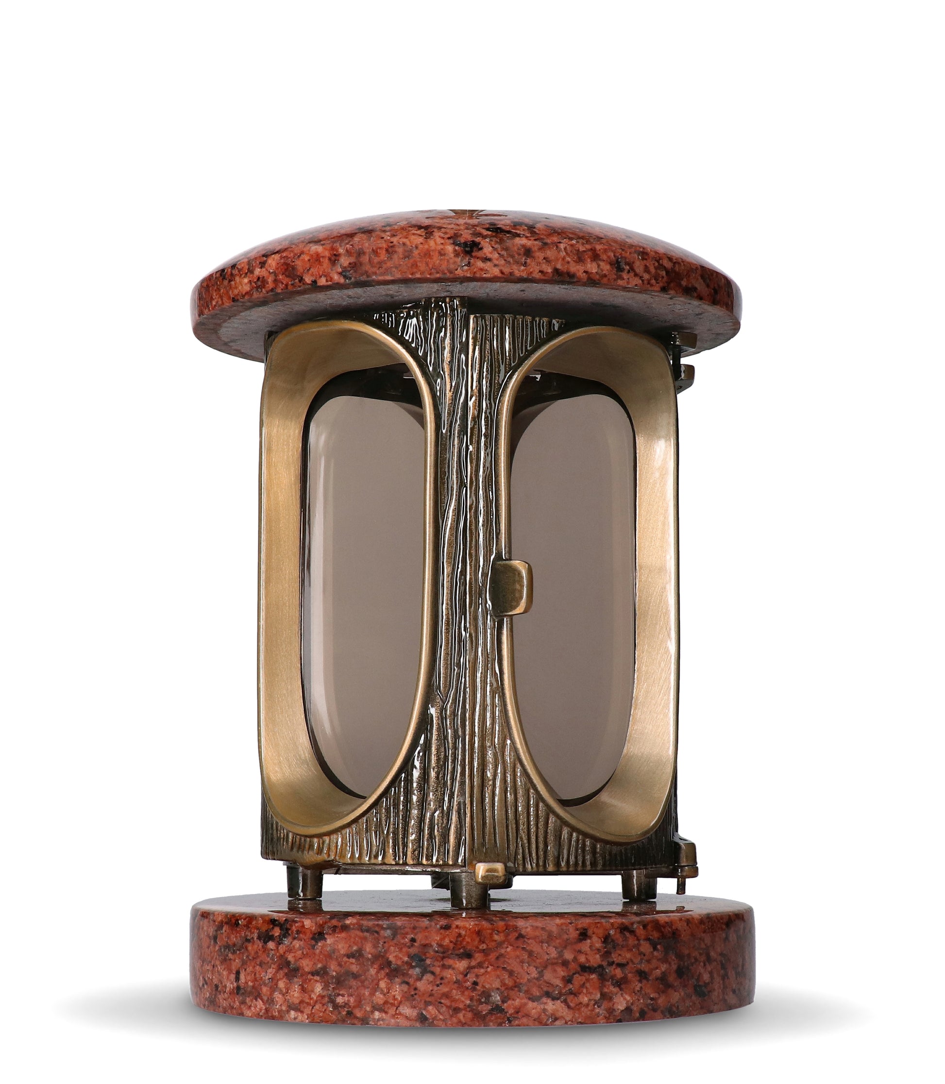 Die Grablaterne Elégant zeichnet sich durch ihre stilvolle und klassische Form aus, die einen würdevollen und zeitlosen Grabschmuck schafft. Sie ist aus einer Kombination von Granit und Aluminium gefertigt. Der Lampendeckel sowie der Sockel bestehen aus Granit, während der Lampenkörper und das Kreuz auf dem Deckel aus Aluminium hergestelltsind. Eine Tür im Lampenkörper ermöglicht ein bequemes Öffnen der Laterne. Dank aufwendiger Polierarbeiten erhält die Oberfläche einen glatten und glänzenden Look.
