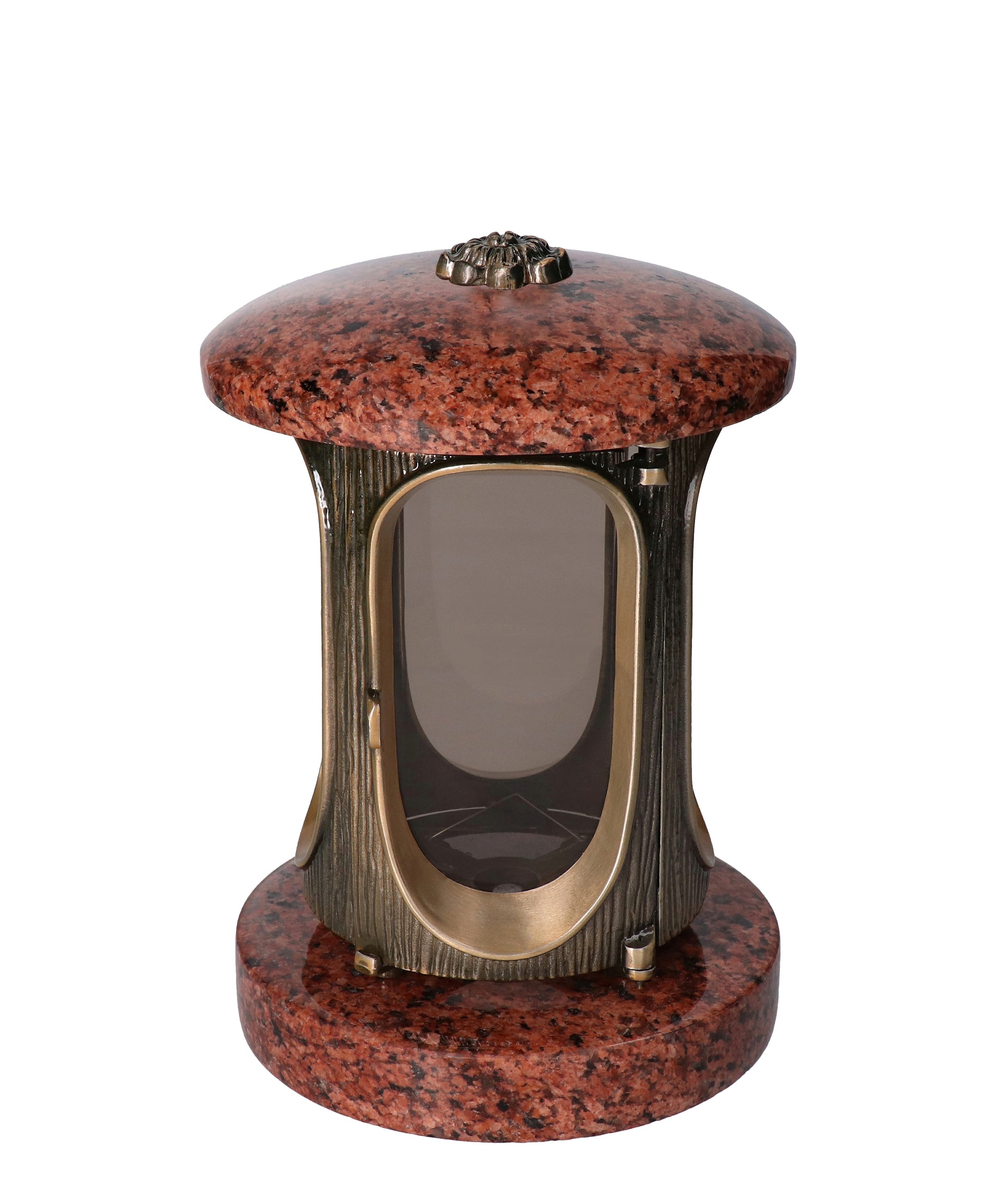 Grablaterne Granit Vanga Höhe 23 cm/Ø 15 cm Bronze mit Rosette