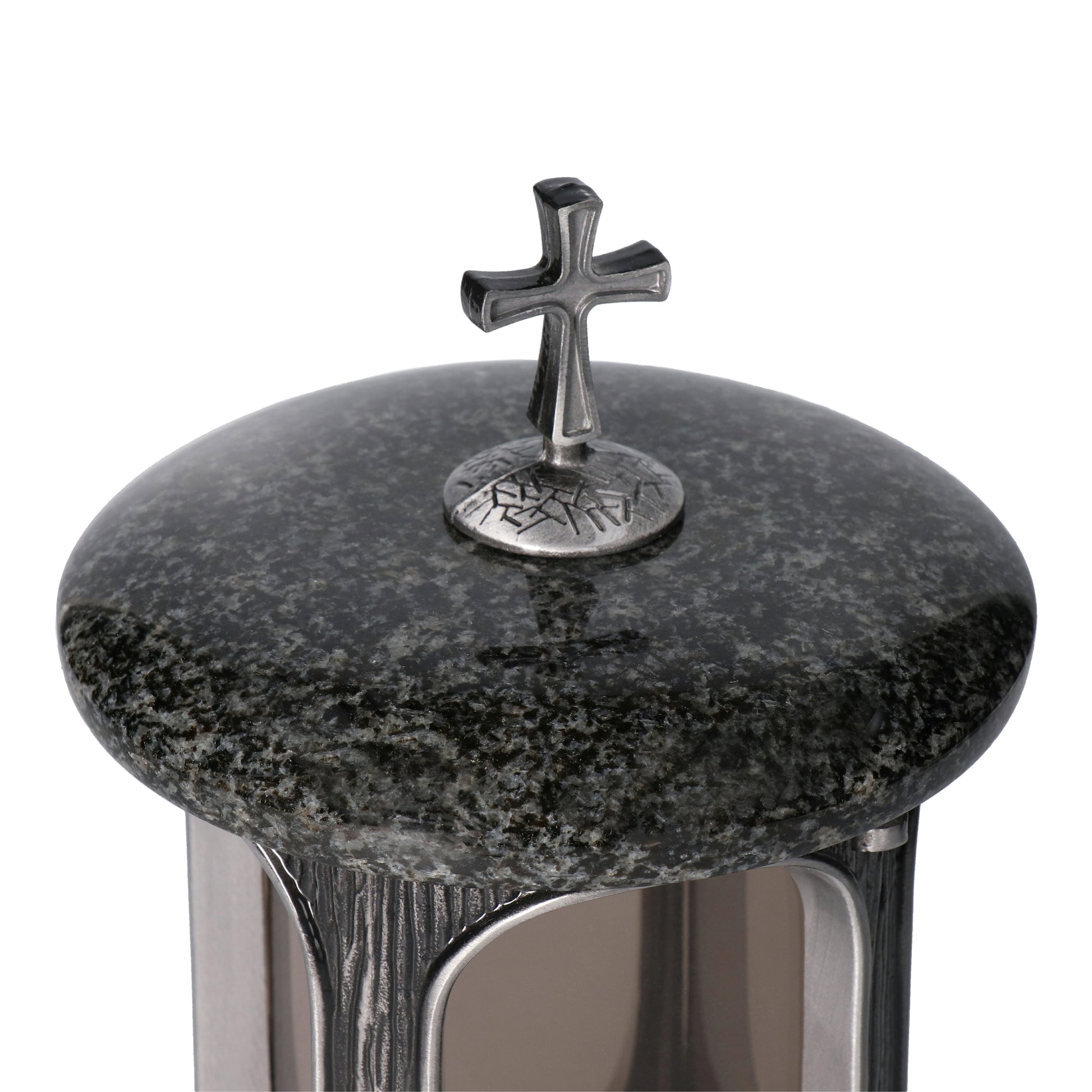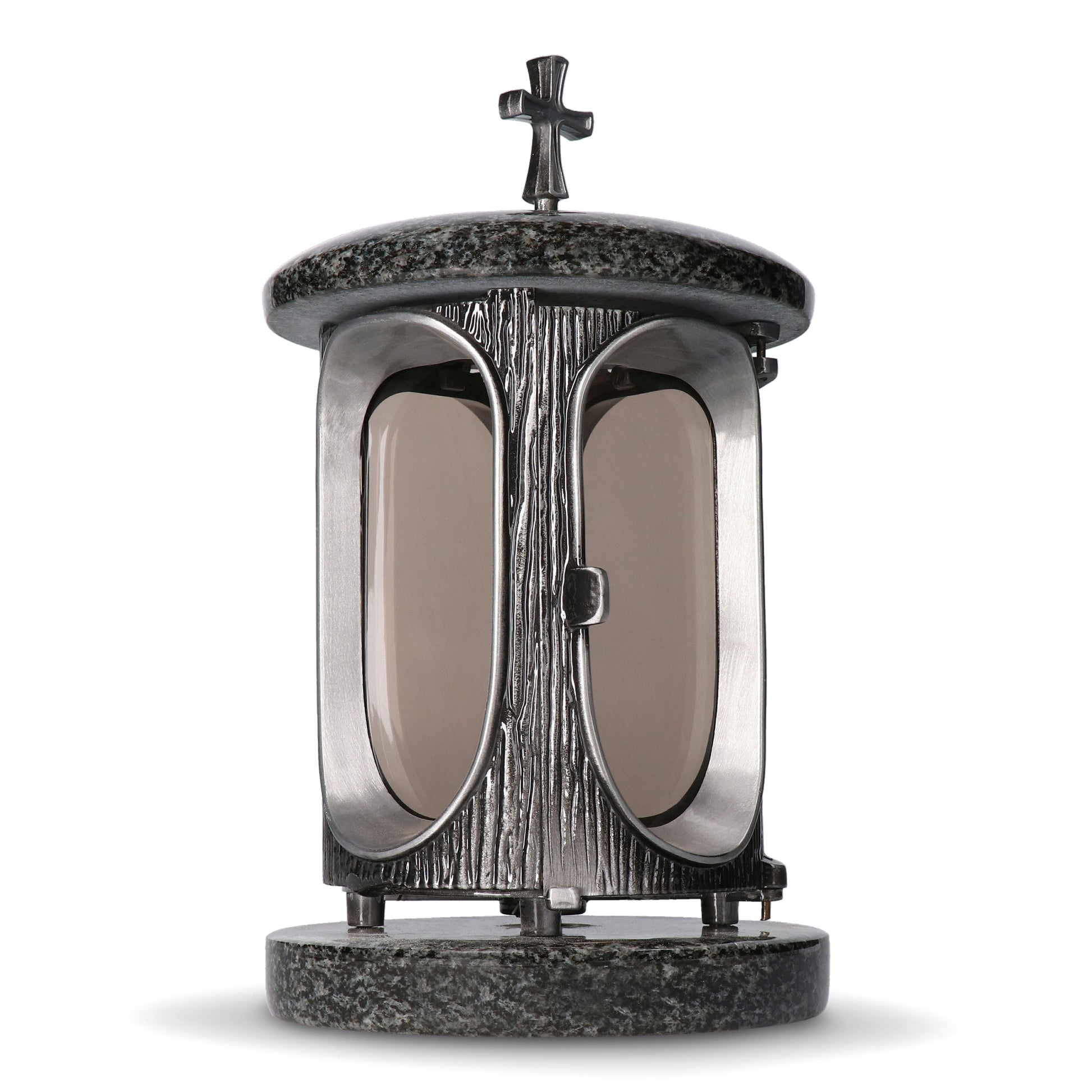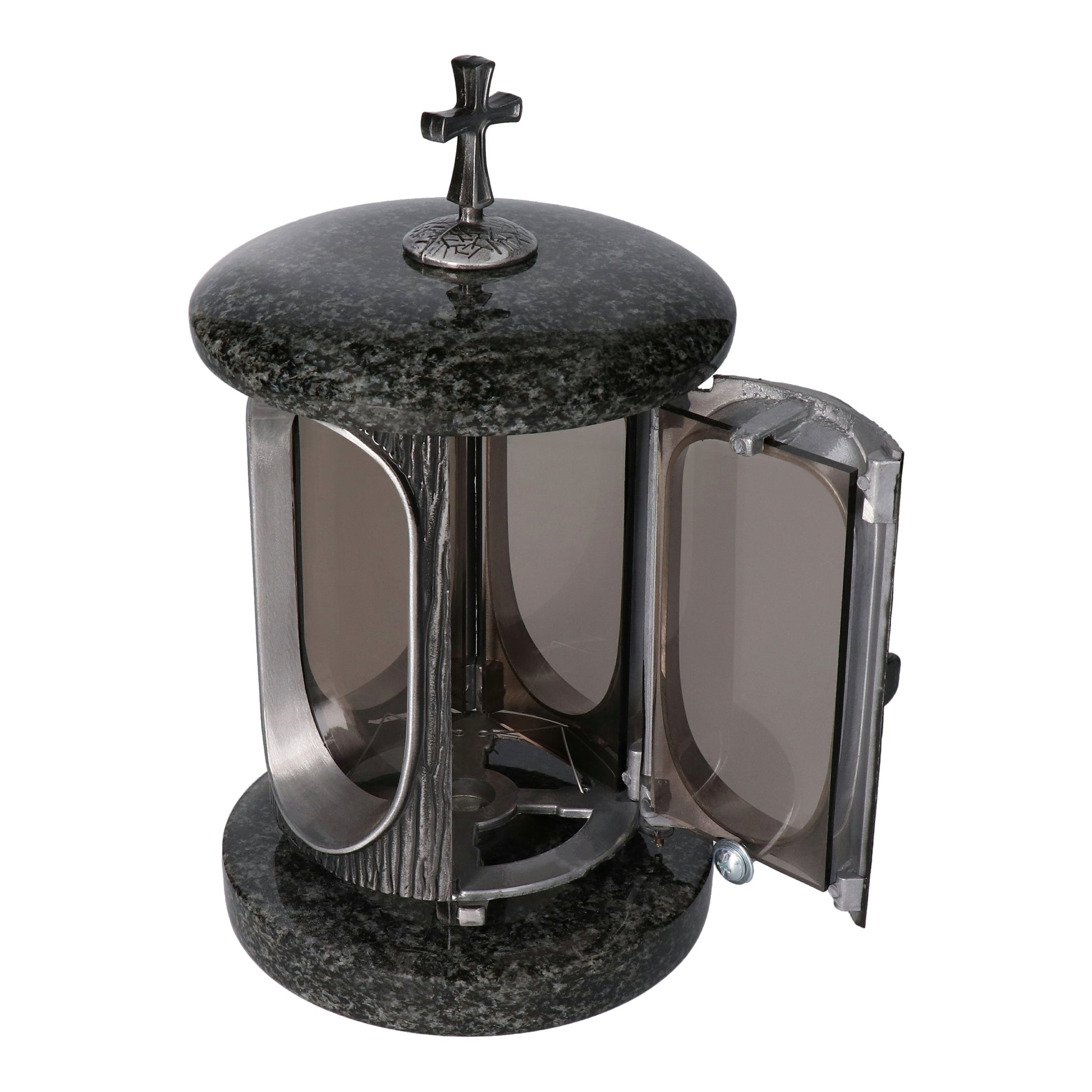 Die Grablaterne Elégant zeichnet sich durch ihre stilvolle und klassische Form aus, die einen würdevollen und zeitlosen Grabschmuck schafft. Sie ist aus einer Kombination von Granit und Aluminium gefertigt. Der Lampendeckel sowie der Sockel bestehen aus Granit, während der Lampenkörper und das Kreuz auf dem Deckel aus Aluminium hergestelltsind. Eine Tür im Lampenkörper ermöglicht ein bequemes Öffnen der Laterne. Dank aufwendiger Polierarbeiten erhält die Oberfläche einen glatten und glänzenden Look.