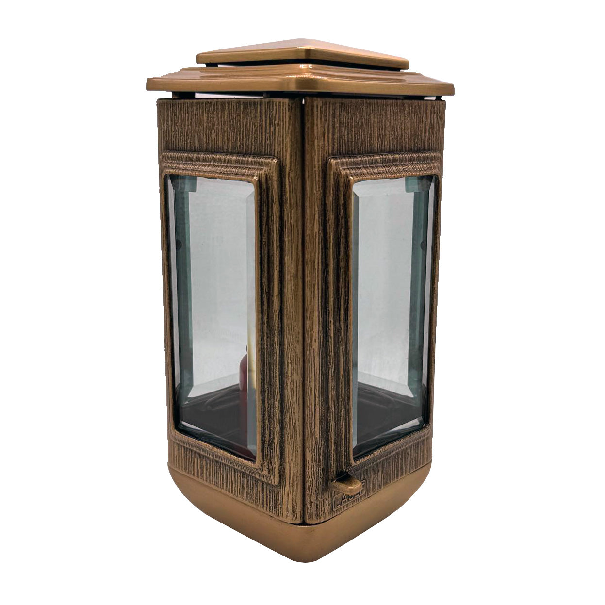 Diese Grablampe wird in Italien handgefertigt. Sie wird aus hochwertiger Bronze gegossen, bearbeitet und mit einer edlen Patina versehen. Ein spezieller Schutzlack sorgt dafür, dass die Lampe ihr neuwertiges Aussehen über viele Jahre behält. Bronze zeichnet sich durch eine goldbraune Farbe und ist besonders widerstandsfähig gegenüber fast allen Umwelteinflüssen.