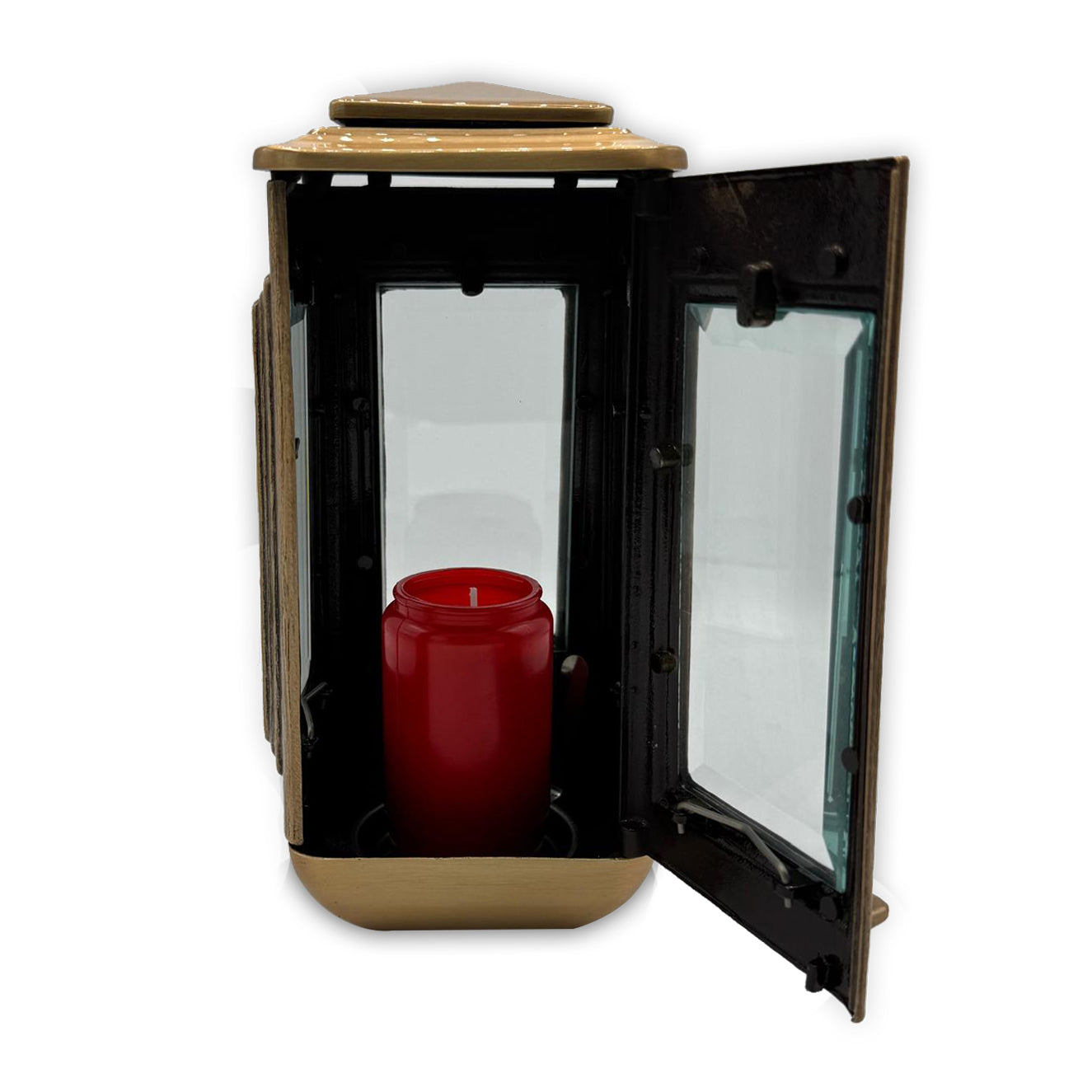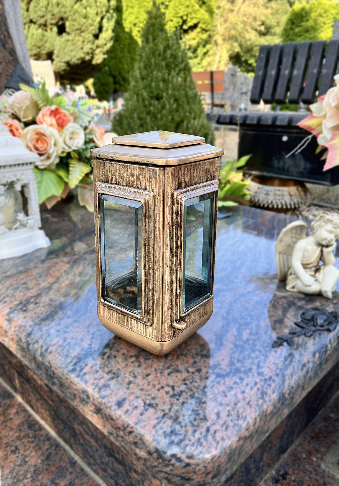 des Grabsteins verbessert. Die Laterne kannt mit Elektroeinsatz und Wachseinsatz verwendet werden.